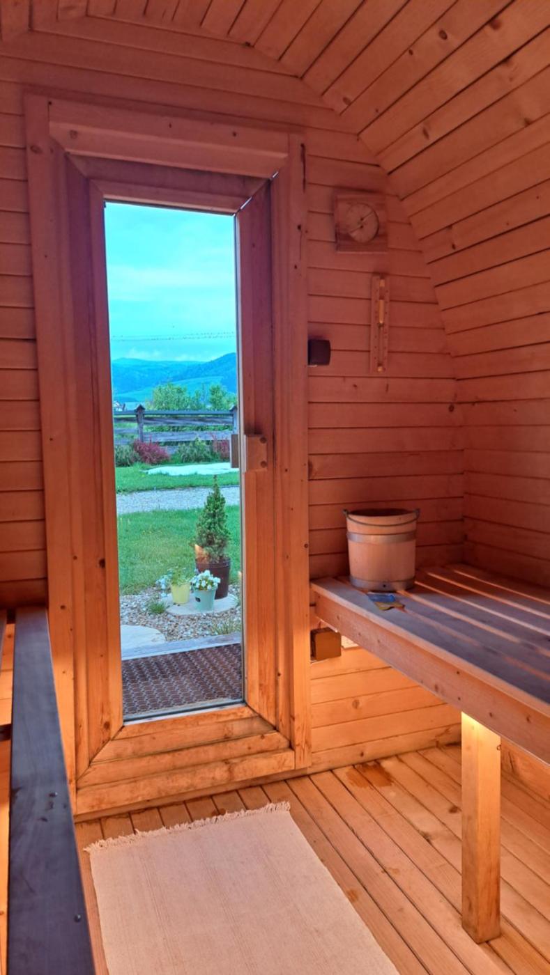 Domek z 2 sypialniami. This chalets standout features are the pool with a view and sauna. This chalet features a shared bathroom and a high chair for children. Guests will find a stovetop, a refrigerator, kitchenware and a microwave in the well-fitted kitchenette. The chalet also offers a barbecue. Featuring a terrace with garden views, this chalet also provides an electric kettle and a flat-screen TV. The unit offers 4 beds. Domek - 5 osobowy. Powierzchnia pokoju ok.: 40 mkw. ;