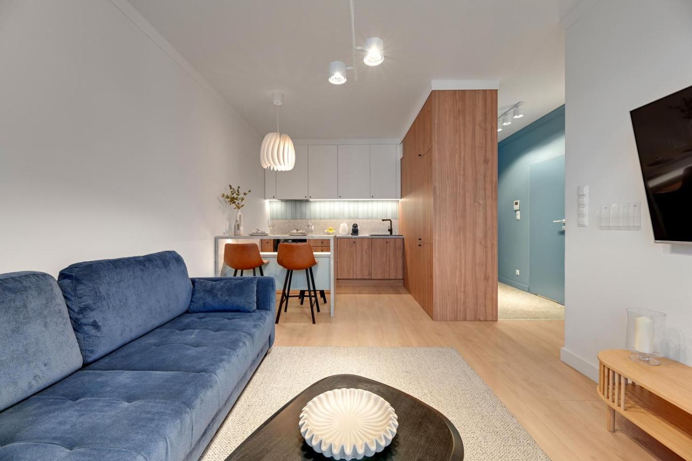 Apartament typu Deluxe z 1 sypialnią. This apartment consists of 1 living room, 1 separate bedroom and 1 bathroom with a shower and free toiletries. The well-fitted kitchenette features a stovetop, a refrigerator, kitchenware and a tea and coffee maker. Featuring a balcony, this apartment also provides soundproof walls, a seating area and a flat-screen TV. The unit offers 2 beds. Apartament - 5 osobowy. Powierzchnia pokoju ok.: 45 mkw.