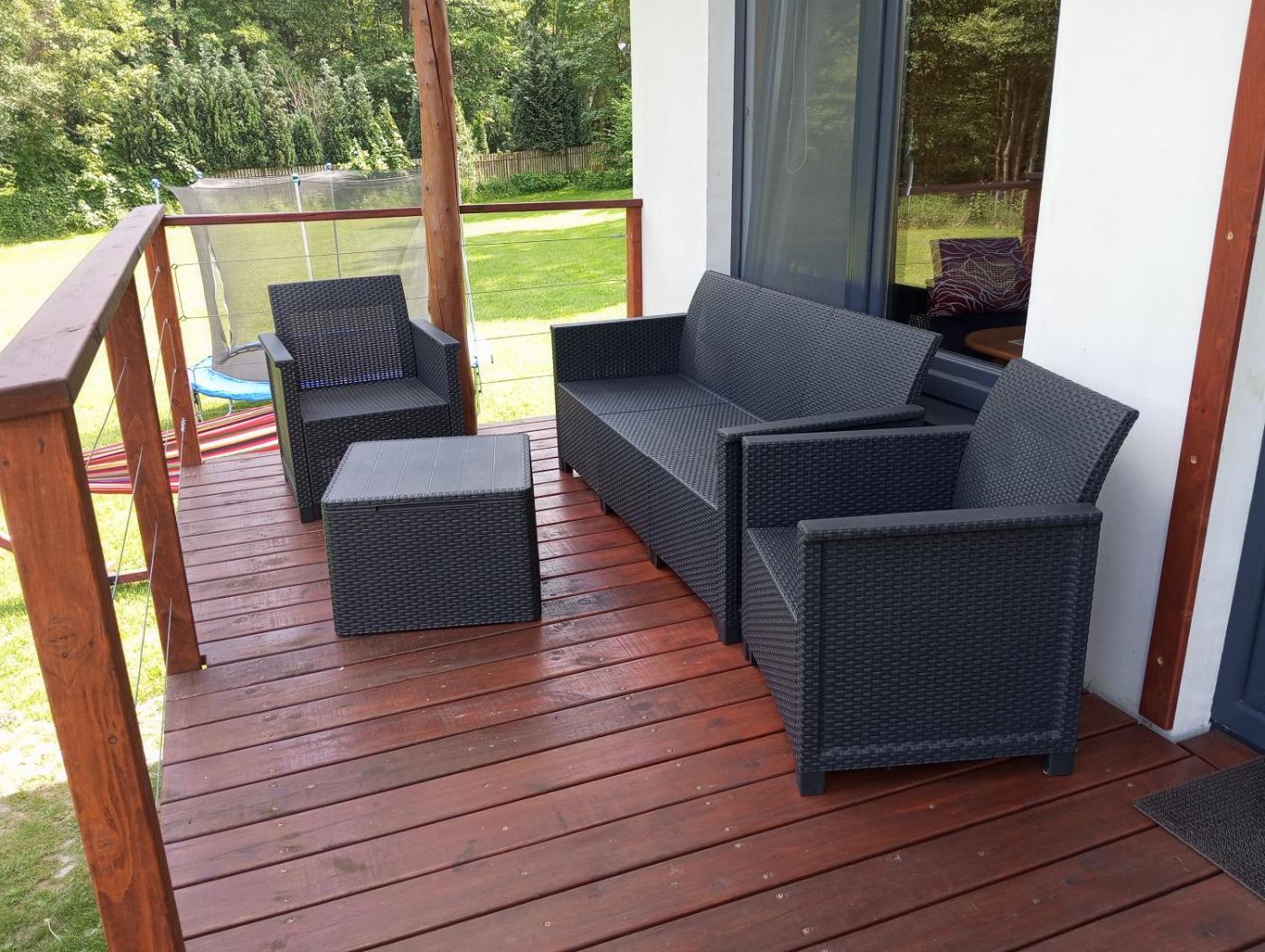 Dom z 1 sypialnią. The holiday homes kitchen is available for cooking and storing food. Boasting a terrace with garden views, this holiday home also offers heating and a flat-screen TV. The unit has 2 beds. Dom wakacyjny - 4 osobowy. Powierzchnia pokoju ok.: 35 mkw.