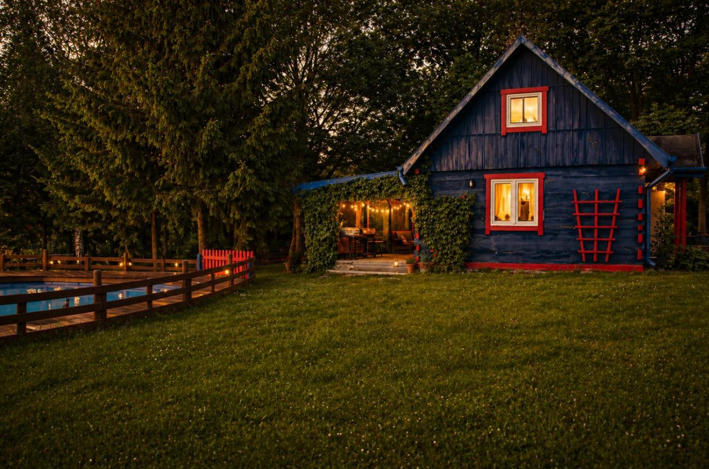 Dom z 2 sypialniami. This holiday homes standout features are the pool with a view and fireplace. Boasting a private entrance, this holiday home also includes 2 bedrooms, a seating area and 1 bathroom with a shower and a hairdryer. Guests will find a stovetop, a refrigerator, kitchenware and an oven in the well-fitted kitchen. The holiday home also features a barbecue. Featuring a terrace with garden views, this holiday home also offers a washing machine and a flat-screen TV with cable channels. The unit has 5 beds. Dom wakacyjny - 6 osobowy. Powierzchnia pokoju ok.: 55 mkw.