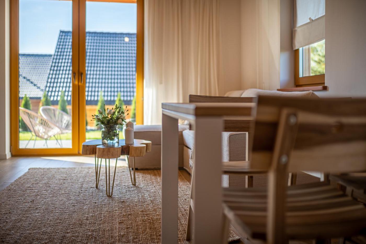 Domek z 2 sypialniami. The spa bath is a top feature of this chalet. This air-conditioned chalet comes with 1 living room, 2 separate bedrooms and 1 bathroom with a walk-in shower. The well-fitted kitchenette has a stovetop, a refrigerator, kitchenware and a microwave. Boasting a terrace with mountain views, this chalet also features a tea and coffee maker and a flat-screen TV with streaming services. The unit has 4 beds. Domek - 7 osobowy. Powierzchnia pokoju ok.: 60 mkw. ;