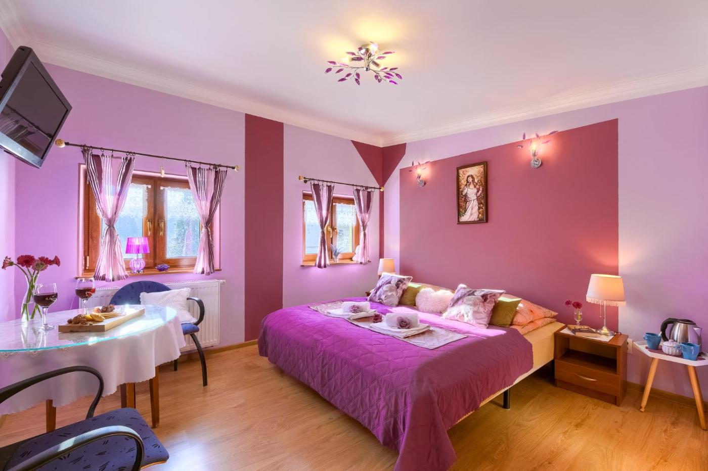 Pokój dwuosobowy. Toa comfortable double bed, it is possible totwo single mattresses. This double room features a flat-screen TV and electric kettle. This room features a LED fireplace. Pokój Dwuosobowy - 2 osobowy. Powierzchnia pokoju ok.: 12 mkw. ;