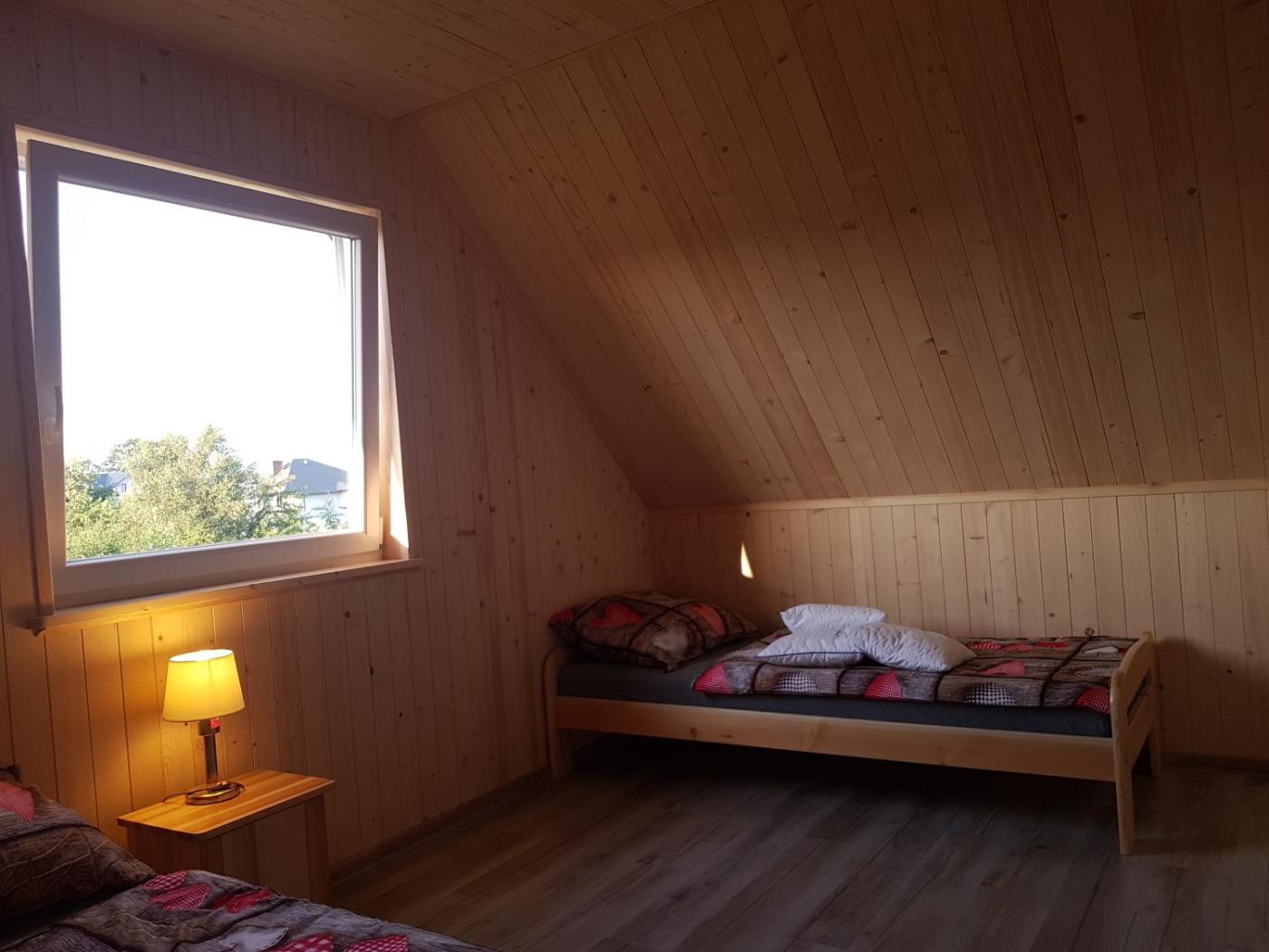Domek z 2 sypialniami. Boasting a private entrance, this chalet includes 1 living room, 2 separate bedrooms and 1 bathroom with a shower and a hairdryer. Guests will find a stovetop, a refrigerator, kitchenware and a microwave in the well-fitted kitchen. The chalet also features a barbecue. Featuring a terrace with garden views, this chalet also offers a tea and coffee maker and a flat-screen TV. The unit has 4 beds. Domek - 6 osobowy. Powierzchnia pokoju ok.: 60 mkw. ;